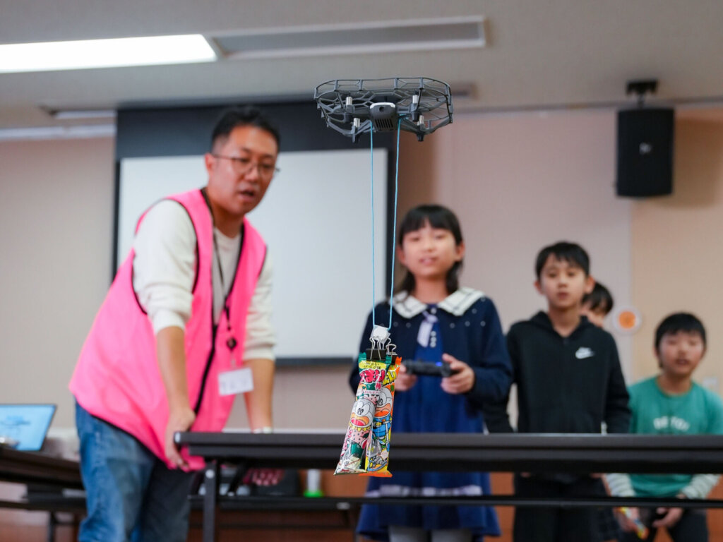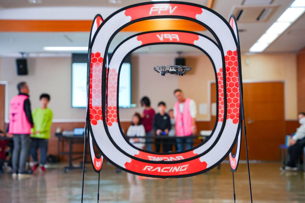 コントローラーを握ってドローンを操縦し、リングくぐりやドローンリレーに挑戦🎮