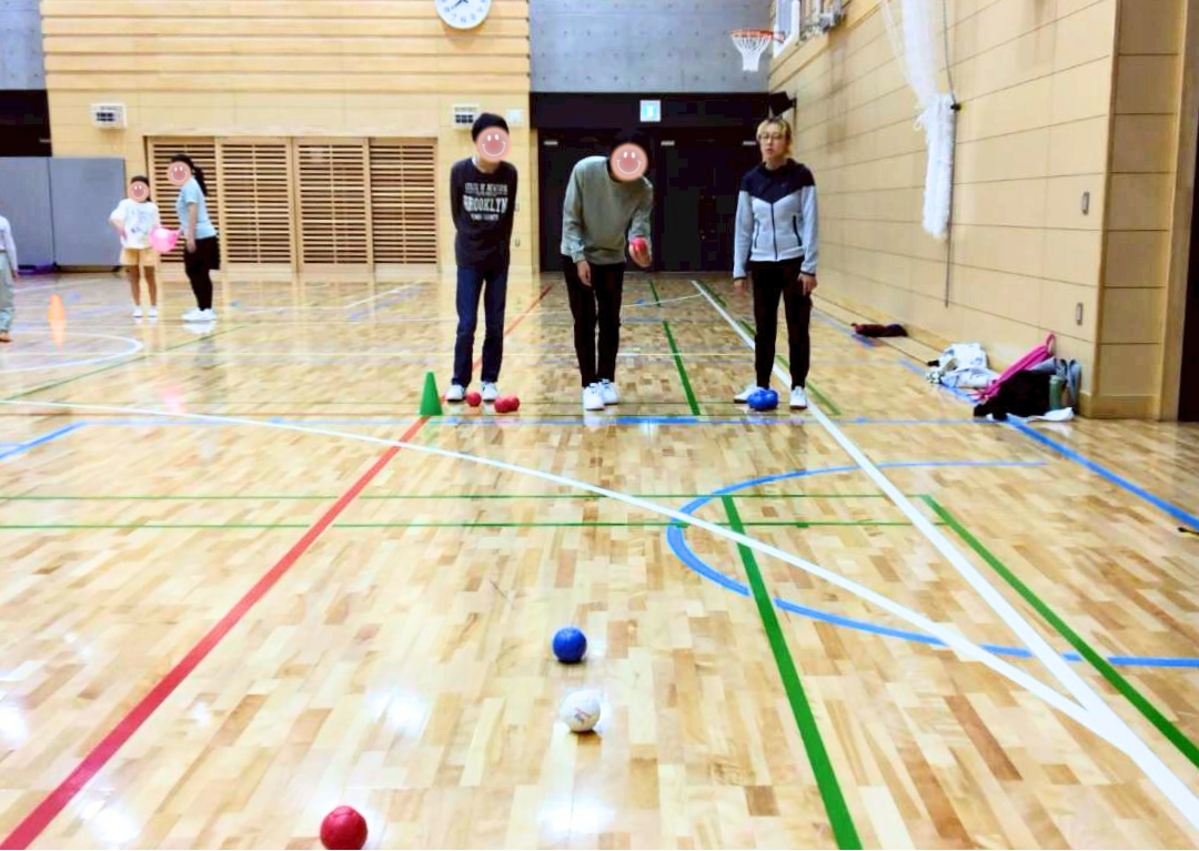 後半の自由あそびタイムでは、ボール当てをしたり、ボッチャに挑戦する子もいて,