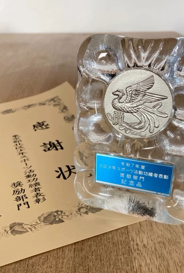 2026年1月24日(土)、北区主催による『北区少年スポーツ活動功績者表彰』の表彰式が開催され、当クラブ代表の玉瀬が表彰されました。