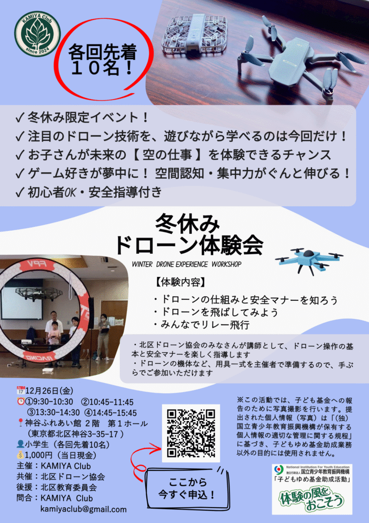 ✓ 注目のドローン技術を、遊びながら学べるのは今回だけ!